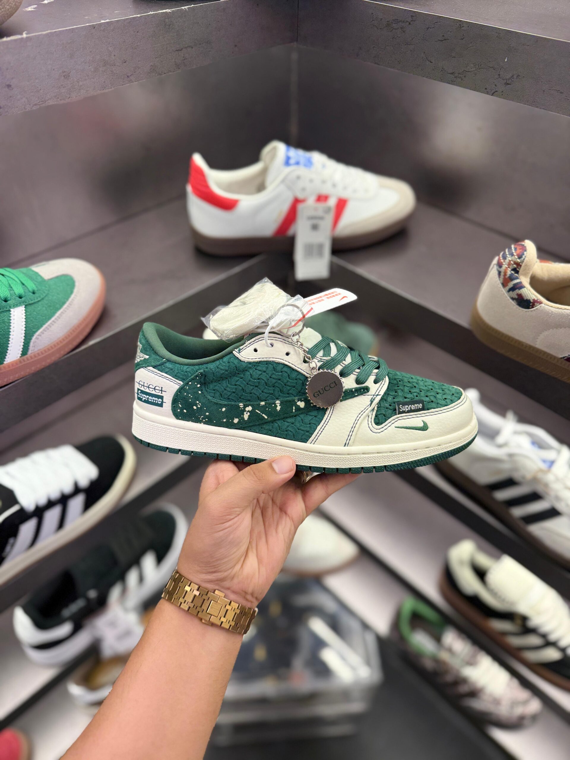 Home » AIR JORDANS RETRO 1 REVERSE SUPREME GUCCI